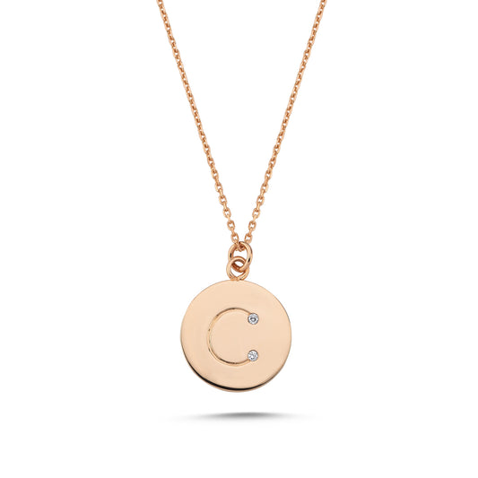 Aura Buchstabenhalskette aus 14-karätigem Gold mit Steindetail Roségold